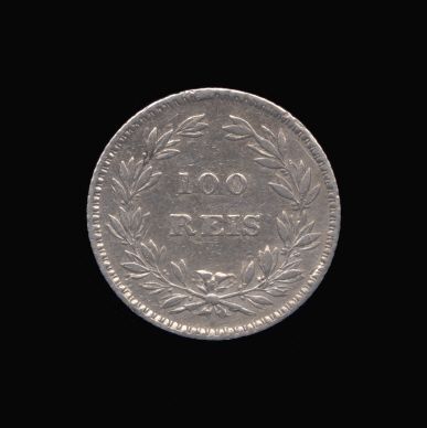 O Older head of Maria II left MARIA II PORTUG ET ALGARB REGINA date R Value within wreath 100 REISCrusader Silver 100 Reis of Maria II (1853)