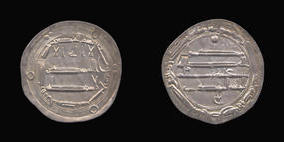 bism Allah duriba hadha al-dinar al-Muhammadiya sana tisae wi sittin we miyya illa ilah la wahdah Allah lahu sharik la (In the name of Allah this dirham was struck in al-Muhammadiya in the year nine and sixty and one hundred There is no god but Allah alone none is with him associated)