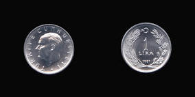 O Star and Crescent above sprig TURKIYE CUMHURIYETI R Sprig dividing denomination and date date 5 KURUS O Star and Crescent above sprig TURKIYE CUMHURIYETI R Stalk of wheat dividing denomination and date date 10 KURUS O Woman walking left carrying load, on rough ground TURKIYE CUMHURIYETI R Value and date within wreath of wheat stalk on left, olive sprig on right, star and crescent above 25 KURUS date O Head of woman in ornate native headdress left TURKIYE CUMHURIYETI R Value and date within wreath of wheat stalk on left, olive sprig on right, star and crescent above 50 KURUS date O Bare head of Mustafa Kemal Ataturk left TURKIYE CUMHURIYETI R Value and date within wreath of wheat stalk on left, olive sprig on right, star and crescent above 1 LIRA dateCoins of Turkey