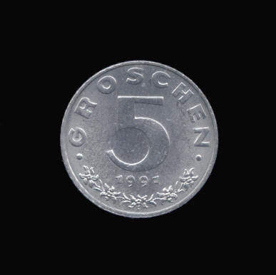 O Crowned eagle with wings spread facing, head left REPUBLIK OSTERREICH R Edelweiss sprigs below date GROSCHEN 5 date List of Coin-Issuing Countries | Dictionary of the Coin Denominations of the World | TreasureRealm Home PageZinc 5 Groschen Coin of Austria
