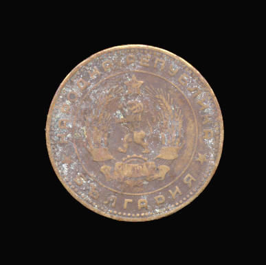 O Rampant lion left within double cornucopiae with wheat stalks coming out, forming a wreath, star above, legend around HAPOДHA PEПУБЛИKA БЪЛГAPИЯ R Value and date within wreath 5 CTOTИHKИ date List of Coin-Issuing Countries | Dictionary of the Coin Denominations of the World | TreasureRealm Home PageBrass 5 Stotinki Coin of Bulgaria, Peoples Republic