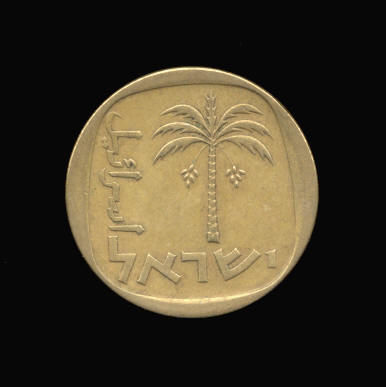 O Palm tree ISRAEL (in Arabic and Hebrew) R 10 over Hebrew words for Agorot and the date 10 AGOROT date (in Hebrew) List of Coin-Issuing Countries | Dictionary of the Coin Denominations of the World | TreasureRealm Home PageAluminum-Bronze 10 Agorot Coin of Israel