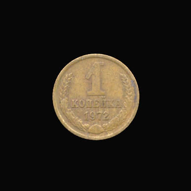 O Hammer and sickle overlain on globe above sun with rays, all within wreath or sheaf of wheat stalks, star above CCCP R Denomination and date within wreath 1 KOПEЙKA date List of Coin-Issuing Countries | Dictionary of the Coin Denominations of the World | TreasureRealm Home PageBrass 1 Kopek Coin of Russia, Soviet Union