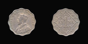 O Gothic head of Queen Victoria left VICTORIA EMPRESS R Legend within border of vines ONE QUARTER ANNA INDIA date O Crowned head of King George V left GEORGE V KING EMPEROR R Legend within border of vines ONE QUARTER ANNA INDIA date O Crowned head of King George V left GEORGE V KING EMPEROR R Legend within border of Hindi characters INDIA 1 ANNA date Hindi script O Crowned head of King George VI left GEORGE VI KING EMPEROR R Legend within quatrefoil, Hindi legends at each point 2 ANNAS INDIA date Hindi script