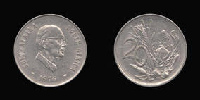 Arms, shield quartered with female figure of Hope, resting right hand on rock, supporting anchor with left; two wilderbeasts left; orange tree; a wagon, crested with lion passant and having a springbok on right and oryx on left, legend EX UNITATE VIRES