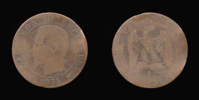 O Napolean III left NAPOLEAN III EMPERUR date R Eagle standing facing, head looking right EMPIRE FRANCAIS CINQ CENTIMES A O Napolean III left NAPOLEAN III EMPERUR date R Eagle standing facing, head looking right EMPIRE FRANCAIS CINQ CENTIMES BB O Napolean III left NAPOLEAN III EMPERUR date R Eagle standing facing, head looking right EMPIRE FRANCAIS CINQ CENTIMES K O Napolean III left NAPOLEAN III EMPERUR date R Eagle standing facing, head looking right EMPIRE FRANCAIS CINQ CENTIMES MA O Napolean III left NAPOLEAN III EMPERUR date R Eagle standing facing, head looking right EMPIRE FRANCAIS CINQ CENTIMES BBCentime Coins