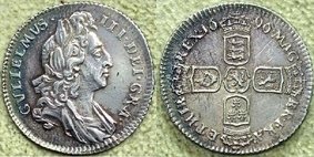 O Laureated and draped bust of William III right, first bust GVLIELMVS· III·DEI·GRA· R Crowned shields with arms, Lion of Nassau in center, early harp in Irish arms date ·MAG BR·FRA· ET·HIB· REX·