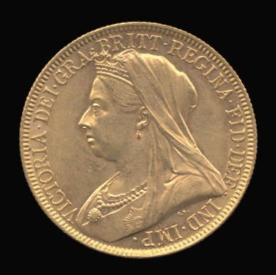 O Old veiled bust of Victoria crowned left VICTORIA·DEI·GRA·BRITT·REGINA·FID·DEF·IND·IMP· R St George on horseback right, slaying dragon 1893S3873 Two Pounds Coin of Victoria