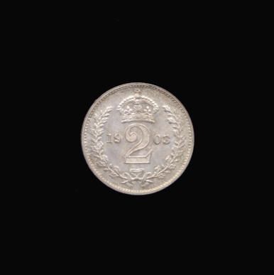 O Bare head of Edward VII right EDWARDVS VII D: G: BRITT: OMN: REX F: D: IND: IMP: R Crowned value within wreath date 2S3988 Twopence Coin of Edward VII
