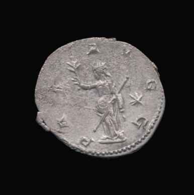 Roman Silver Antoninianus of Volusian (0251AD-0253AD) O Radiated, draped and cuirassed bust of Volusian bearded right IMP CAE C VIB VOLVSIANO AVG R Pax standing left, branch in right hand, scepter in left, star in right field PAX - AVGG