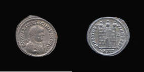 O 19 Laureated bust of Licinius I draped left, globe, scepter in left hand, mappa in right hand R IMP LICI-NIVS AVG Camp gate with three turrets, no doors; 6 layers of stones O 19 Laureated bust of Licinius I draped left, globe, scepter in left hand, mappa in right hand R IMP LICI-NIVS AVG Camp gate with three turrets, no doors; 6 layers of stones O 20 Laureated bust of Licinius I draped left, globe, scepter in left hand, mappa in right hand R IMP LICI-NIVS AVG Camp gate with three turrets, no doors; 6 layers of stones O 17 Laureated bust of Licinius II draped right, globe, scepter in left hand, mappa in right hand R D N VAL LICIN LICINIVS NOB C Camp gate with three turrets, no doors; 6 layers of stones O 19 Laureated bust of Licinius II draped right, globe, scepter in left hand, mappa in right hand R D N VAL LICIN LICINIVS NOB C Camp gate with three turrets, no doors; 6 layers of stones