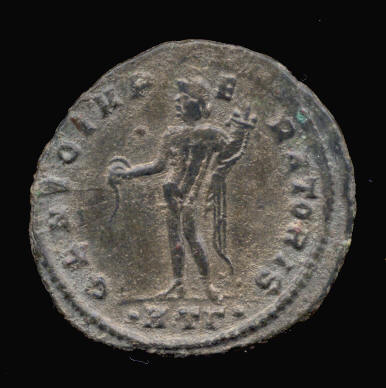 Roman Bronze Follis (IV-i) of Galerius (0293AD-0311AD) O 27.0 Laureated bust of Galerius right R IMP C GAL VAL MAXIMIANVS P F AVG Genius of the Roman people standing left, pouring from a patera in right hand, holding a cornucopiae in left