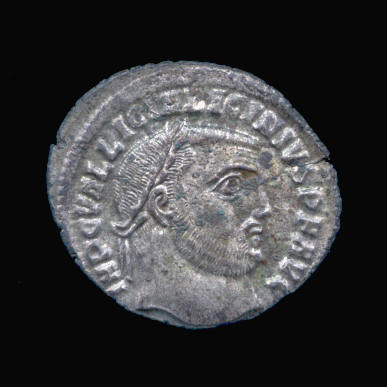 Jupiter standing facing, head left, chlamys hanging from left shoulder, right hand holding Victory (who crowns Jupiter) on globe, left leaning on scepter; eagle with wreath in beak at feet to left