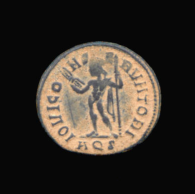 Roman Bronze Follis of Licinius (0308AD-0324AD) O Laureated bust of Licinius cuirassed right IMP LICINIVS P F AVG R Jupiter standing left, a spear in left hand and thunderbolt in right IOVI CO-NS-E-RVATORI