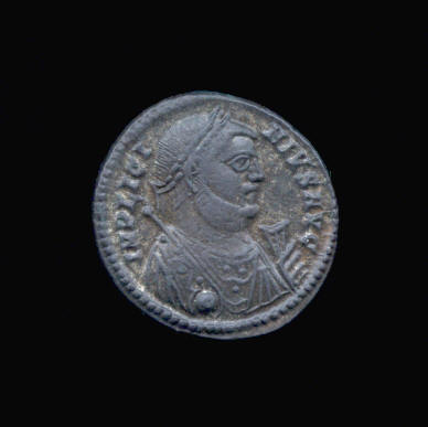Laureated bust of Licinius I draped left, globe, scepter in left hand, mappa in right hand