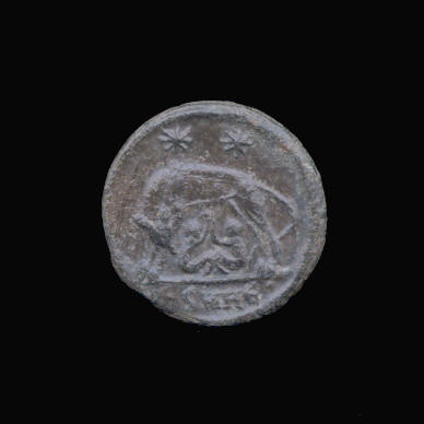 Roman Bronze Follis of Urbs Roma (0330AD-0333AD) O Helmeted bust of Urbs Roma left, wearing imperial cloak VRBS - ROMA R She-wolf standing left, suckling twins; above, two stars