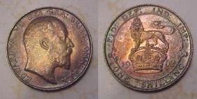 O Bare head of Edward VII right EDWARDVS VII DEI GRA: BRITT: OMN: REX R Lion standing left on shield FID: DEF: IND: IMP: ONE SHILLING date O Bare head of Edward VII right EDWARDVS VII DEI GRA: BRITT: OMN: REX R Lion standing left on shield FID: DEF: IND: IMP: ONE SHILLING date O Bare head of Edward VII right EDWARDVS VII DEI GRA: BRITT: OMN: REX R Lion standing left on shield FID: DEF: IND: IMP: ONE SHILLING date O Bare head of Edward VII right EDWARDVS VII DEI GRA: BRITT: OMN: REX R Lion standing left on shield FID: DEF: IND: IMP: ONE SHILLING date