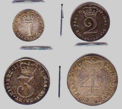 O Laureated, draped and cuirasseed bust of George III right, young bust GEORGIVS·III·DEI·GRATIA· R Crowned value value date ·MAG·BRI·FR·ET·HIB·REX· Coins of England, Ireland, Scotland, and Great Britain for Sale | TreasureRealm Home PageS3762 Maundy Set Coin of George III